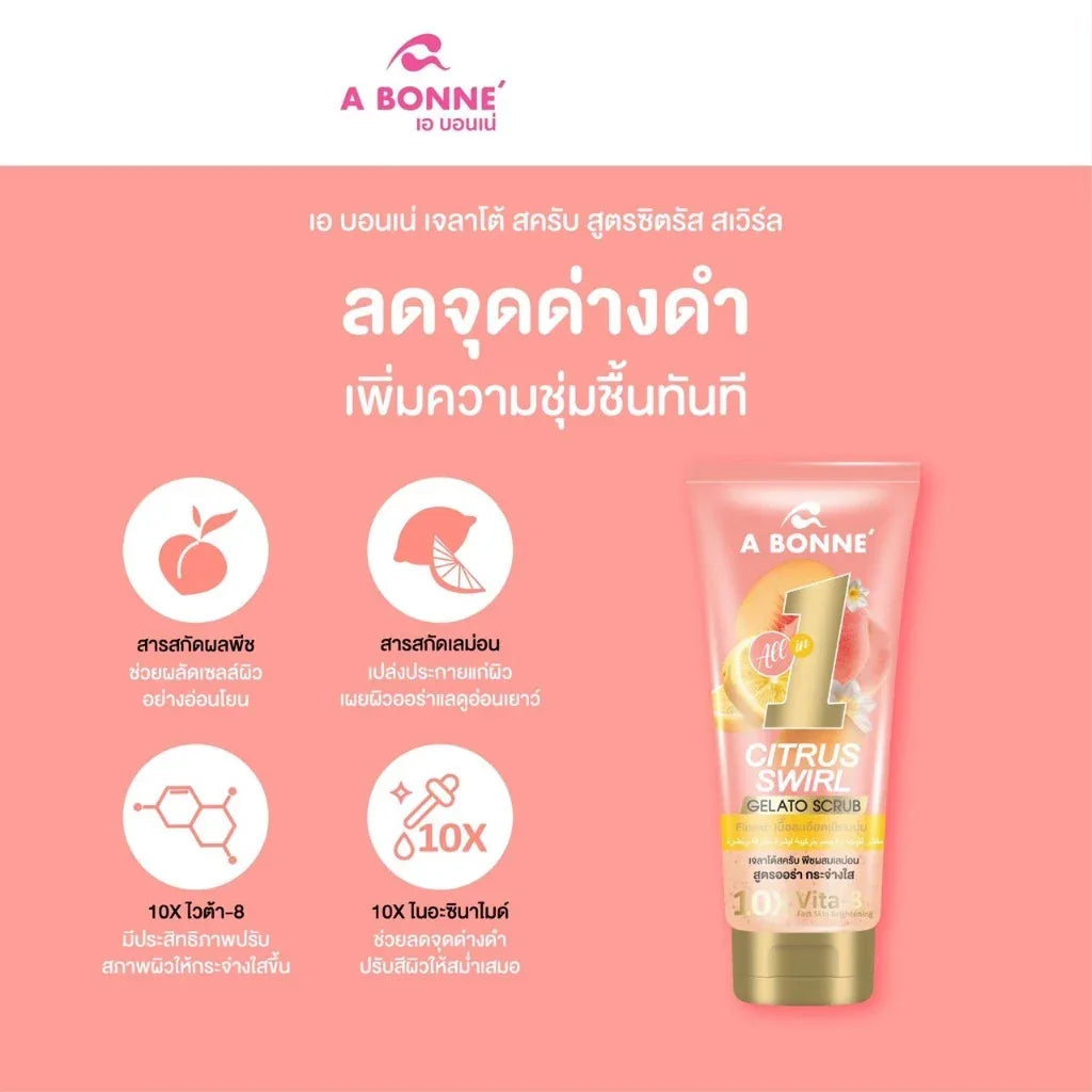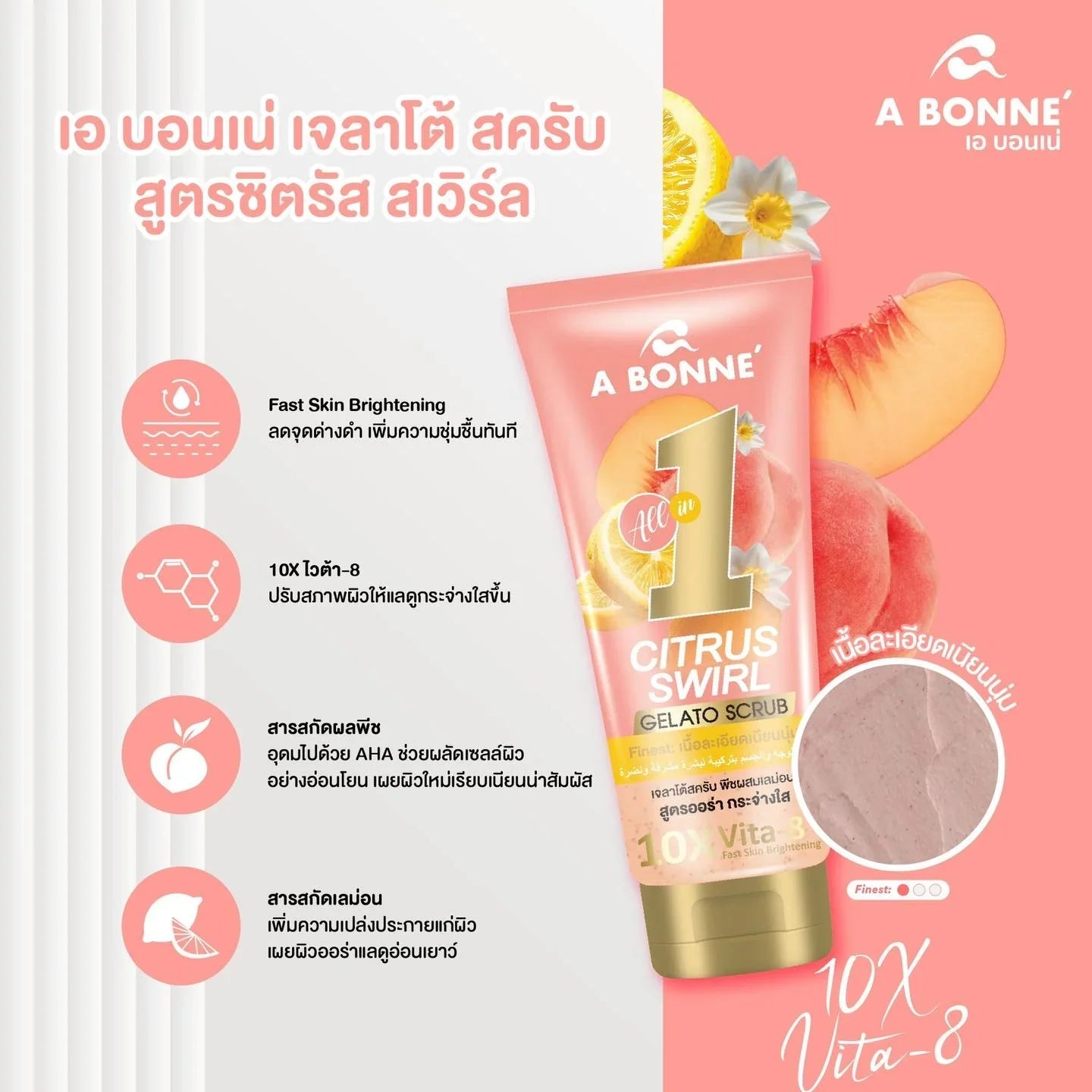 Reveal your most radiant, smooth, and glowing skin with A Bonne' Peach and Lemon Gelato Brightening Scrub — a refreshing treat for your skincare routine.