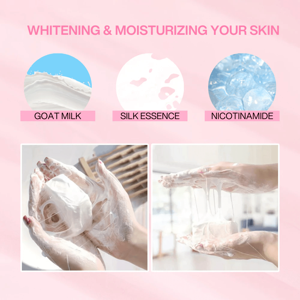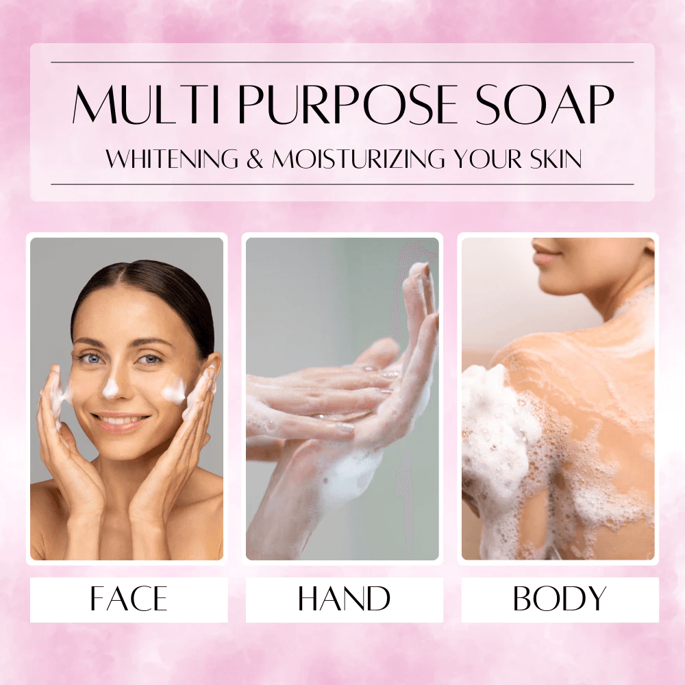 Revolutionary skincare product brightening, moisturizing, and evening out skin tone with a 70g soap bar, suitable for all skin types, including sensitive skin.