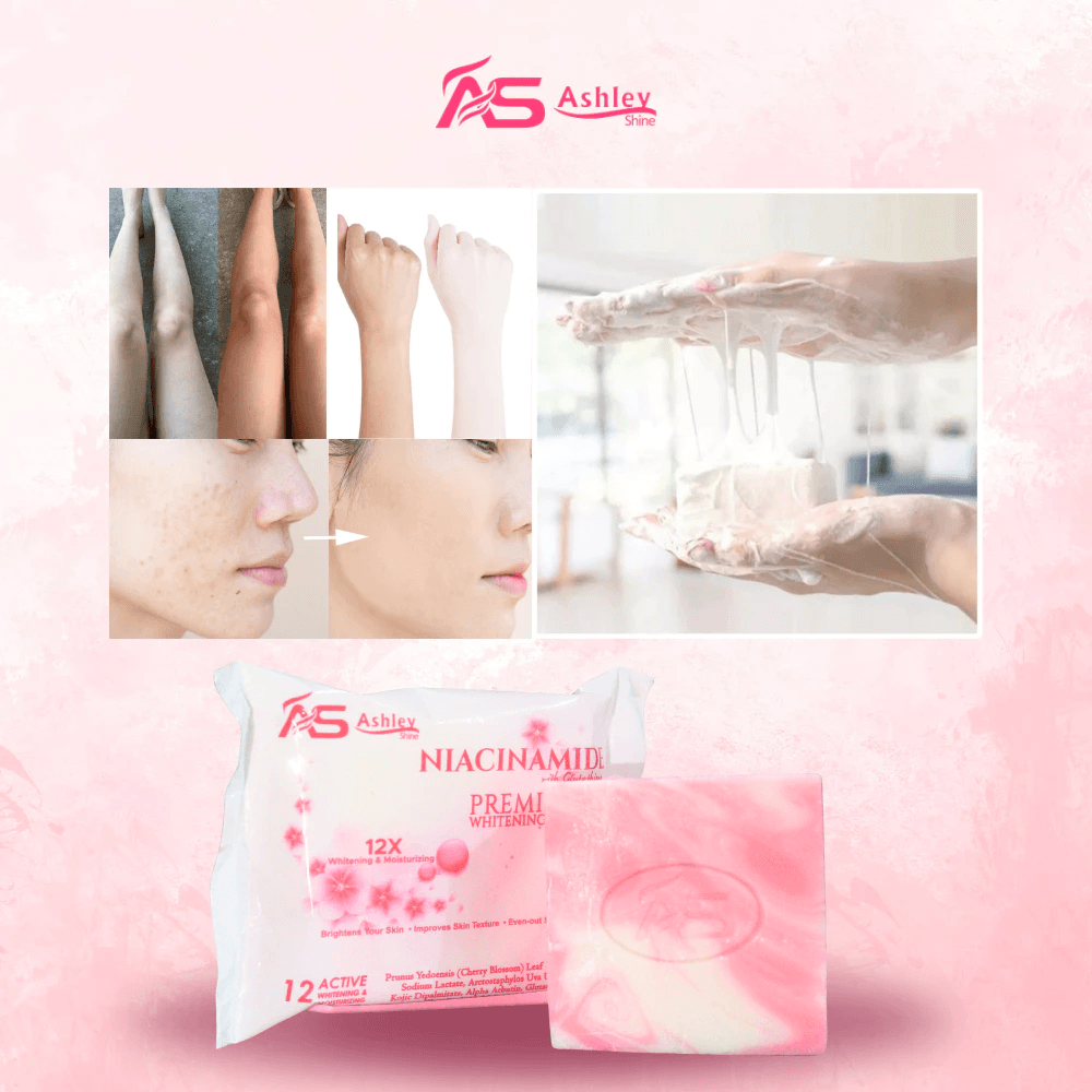 Introducing Ashley Shine Niacinamide Soap 12X Whitening & Moisturizing, a revolutionary skincare product that brightens your skin, improves skin texture, and evens out skin tone. This 70g soap is specifically designed to provide long-lasting moisturization and nourishment to your skin, leaving you with a radiant and youthful glow.