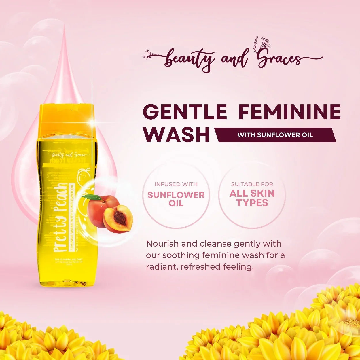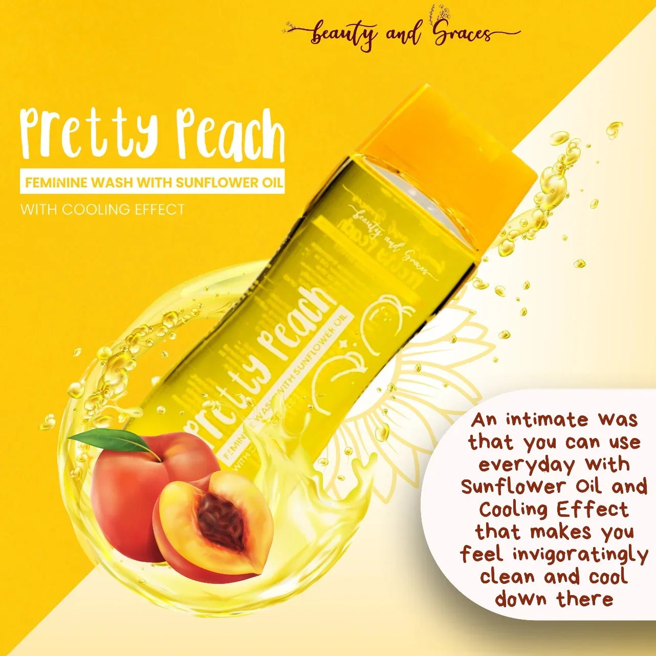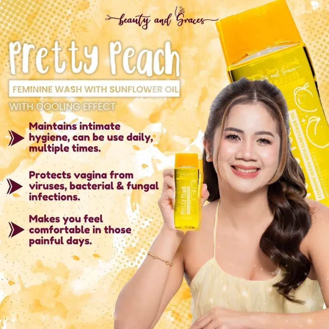Pretty Peach Feminine Intimate Wash with Sunflower Oil is developed due to the sensitiveness of the feminine genital area. It is specially formulated to keep your intimate area clean and tight. It's an all organic feminine intimate wash specially formulated to maintain the PH balance of the vagina.