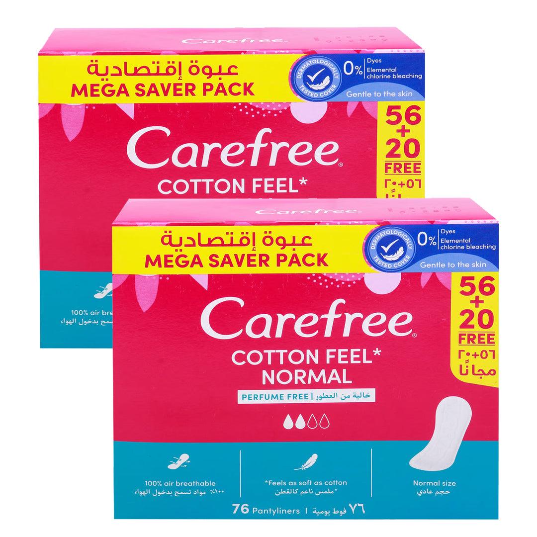 Carefree Cotton Normal Perfume Free Panty Liners - 2 × 76'S (Offer)