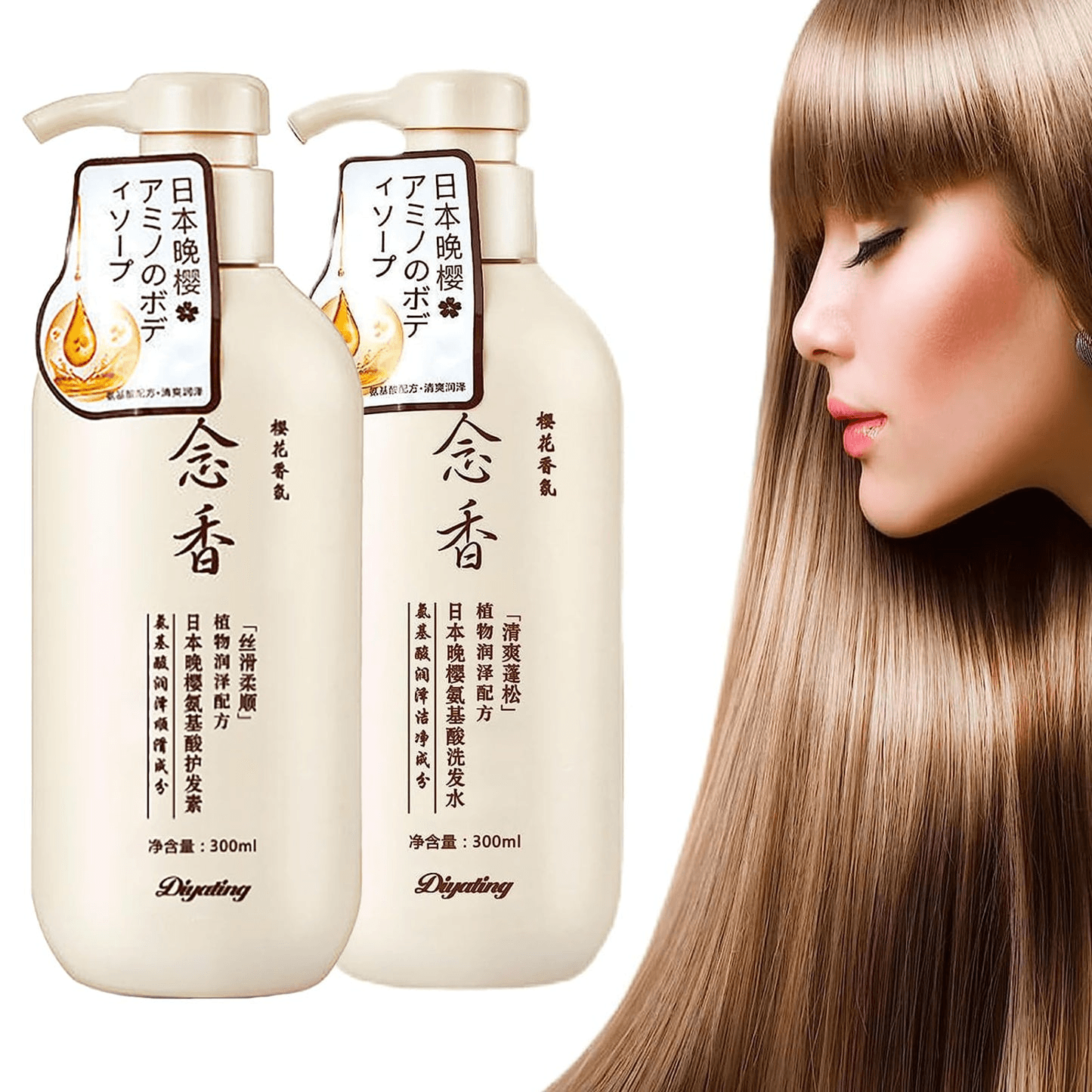 Diyating Hair Growth Sakura Japanese Shampoo & Conditioner Set - 300ml × 2Pcs