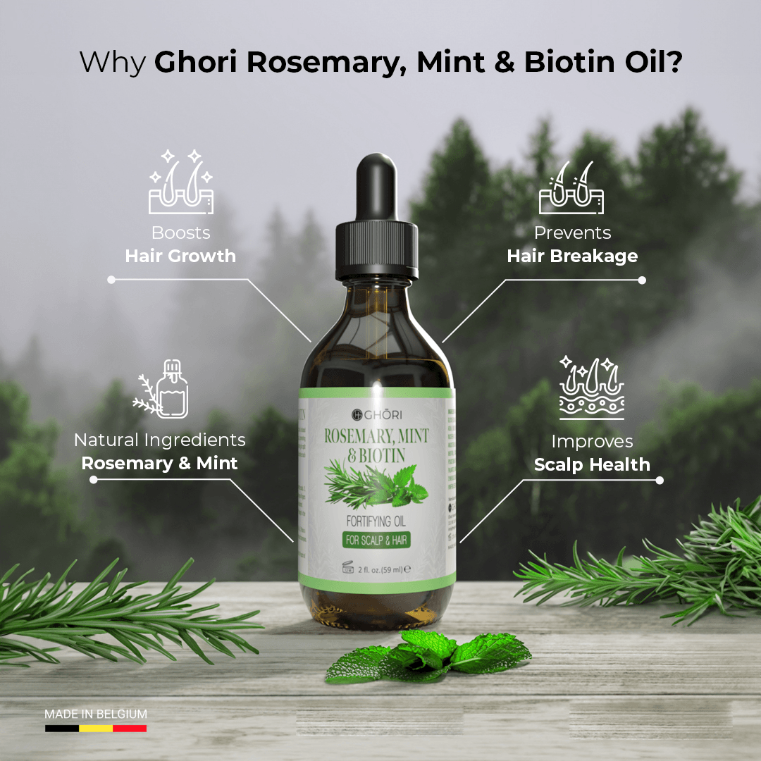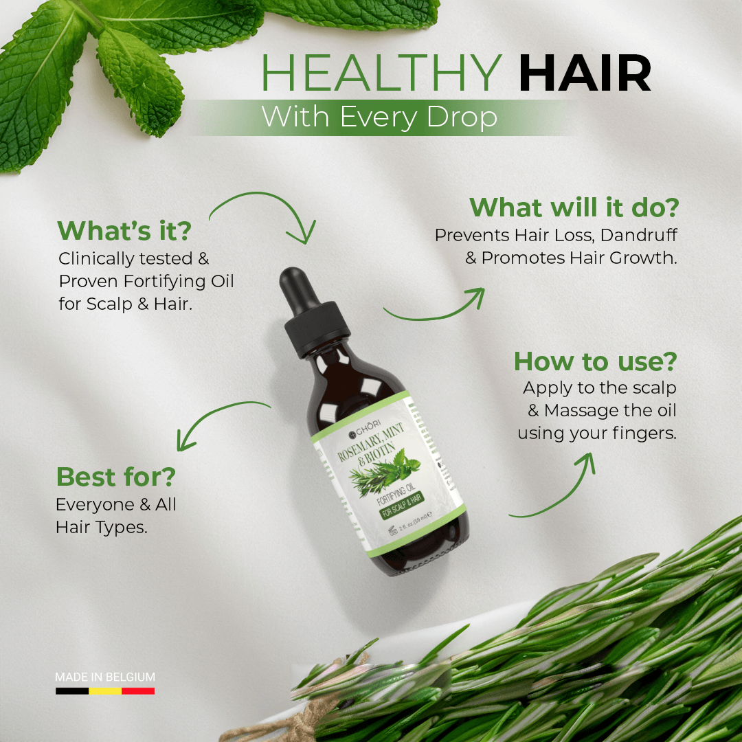 ➤ Apply a small quantity of Ghori rosemary, mint & Biotin oil to the scalp.