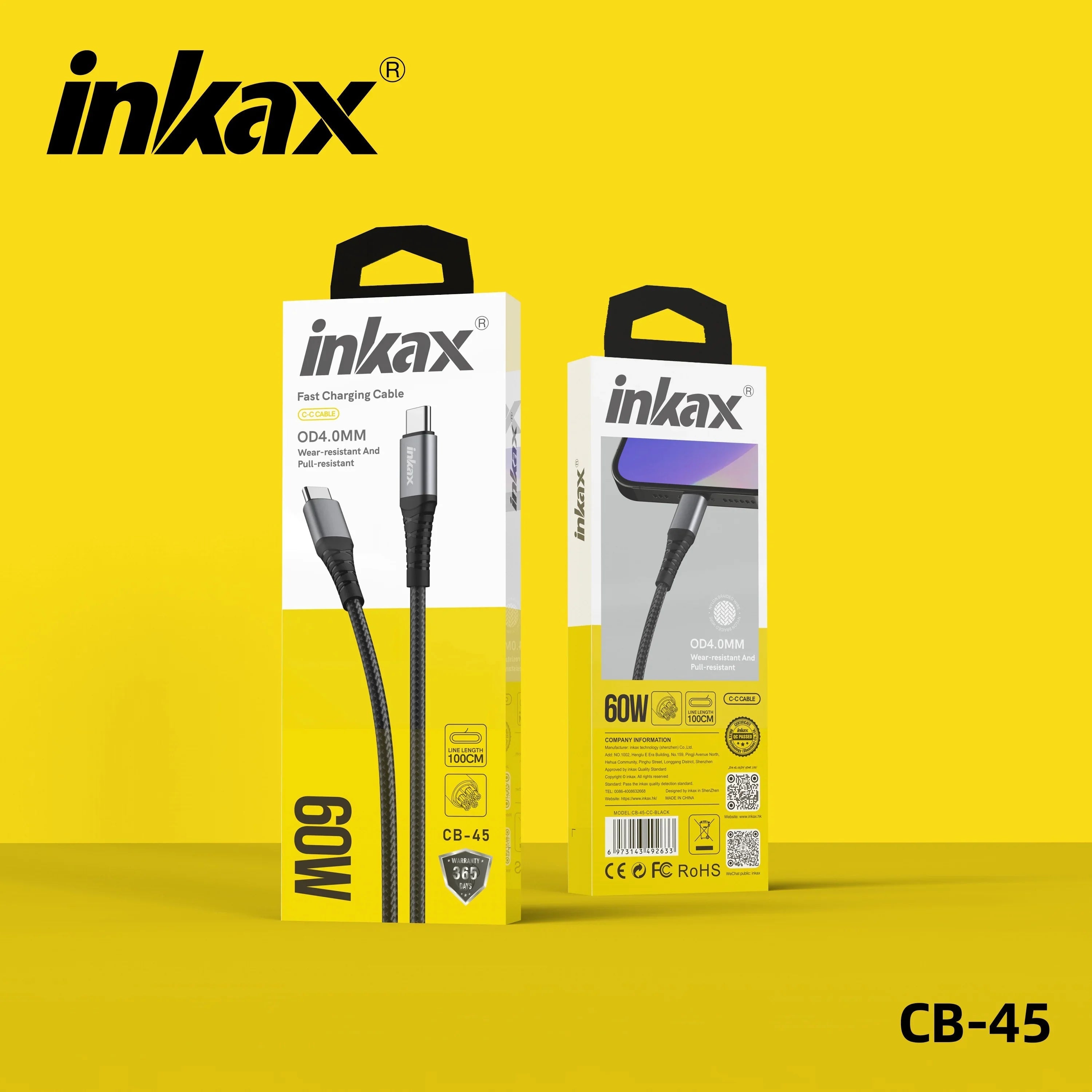 Experience high-speed charging and data transfer with the INKAX CB-45 Type-C to Type-C Cable. Engineered with durable zinc alloy, this 60W cable ensures fast, reliable performance for all your Type-C devices.
