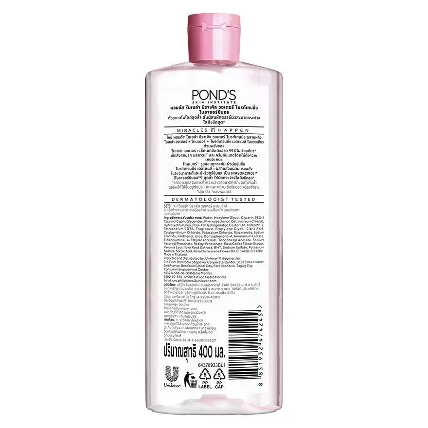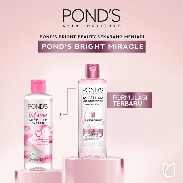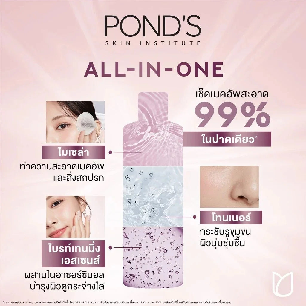 Experience the latest breakthrough from POND’S Skin Institute — POND’S Brightening Micellar Miracle Water, the all-in-one formula that combines Micellar Water + Toner + Brightening Essence. Designed to deeply cleanse, minimize pores, and brighten skin, this powerful yet gentle micellar water leaves your complexion clean, fresh, and glowing.