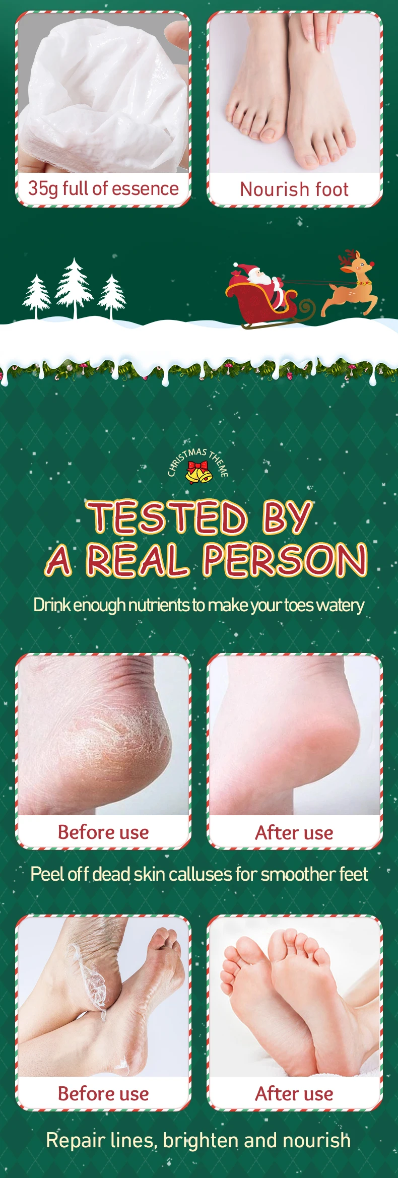 Designed for deep hydration and gentle exfoliation, this mask removes rough, dry skin while nourishing your feet. With festive packaging and a holiday-inspired scent, it makes foot care feel extra special.