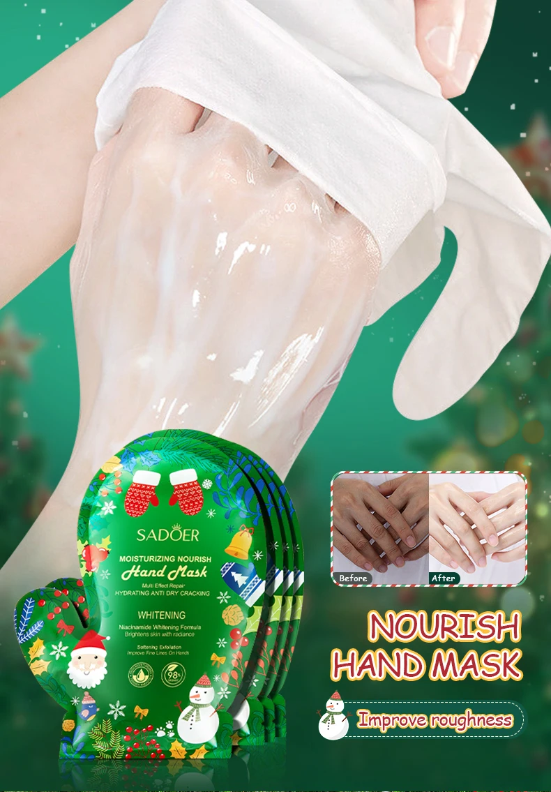 This nourishing glove mask delivers intense moisture and softness, eliminating dryness, roughness, and signs of fatigue. With a concentrated essence and festive design, your hands will feel silky and refreshed after one treatment.