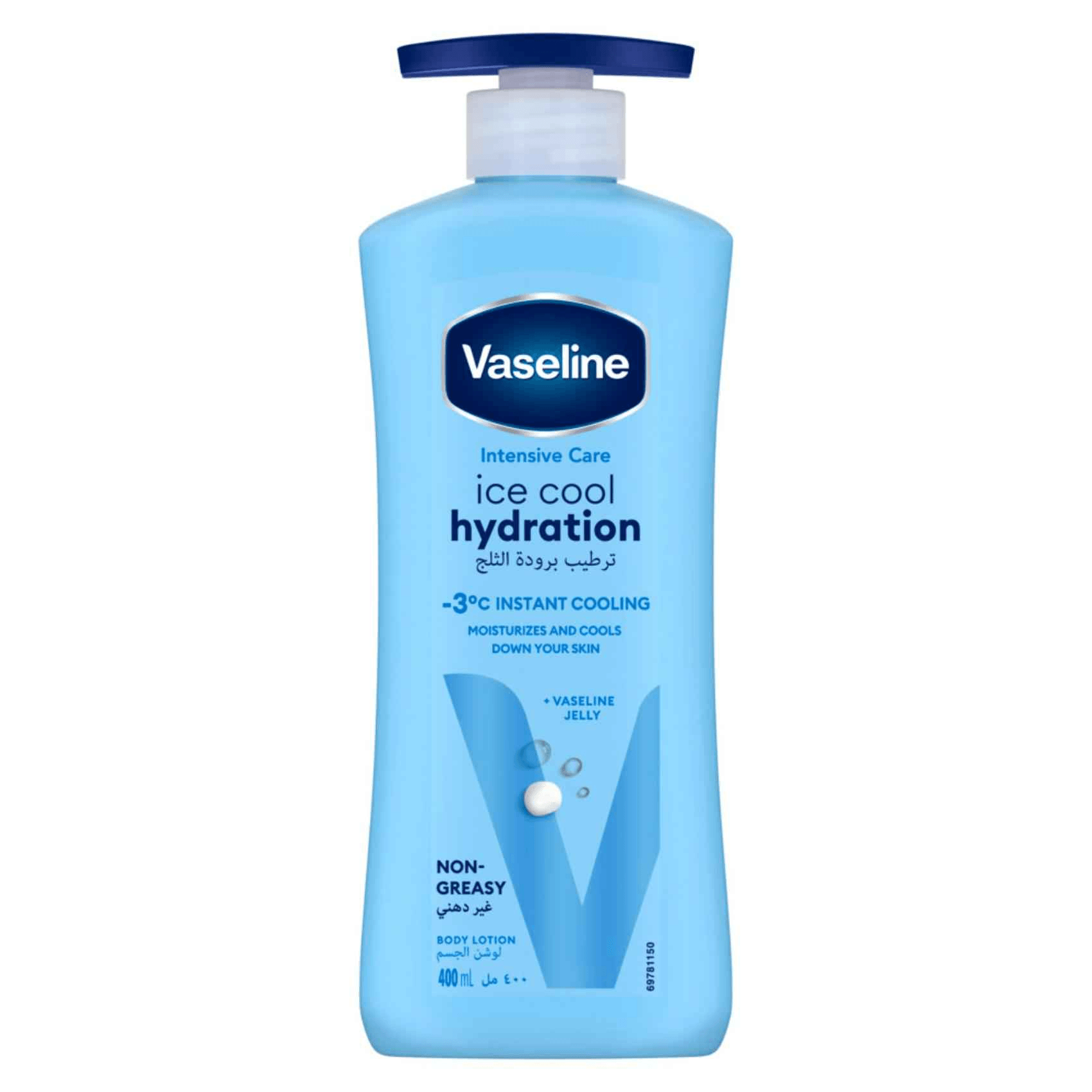 Beat the heat this summer with Vaseline Intensive Care Ice Cool Hydration Body Lotion. This Intensive Care body lotion has been specially crafted for hot and humid climates, and is designed to moisturize and cool your skin by up to -3°C. The lightweight and fast-absorbing formula works almost instantly to deeply moisturise and cool your skin, even on hot and dry days. Vaseline body lotion contains micro droplets of Vaseline petroleum jelly to help your skin draw in and retain moisture deep in the skin's surface, so that it stays moisturised and feels soft and cooler. For radiant, glowing skin that feels cool and hydrated, use Vaseline Ice Cool Hydration daily Body Lotion.