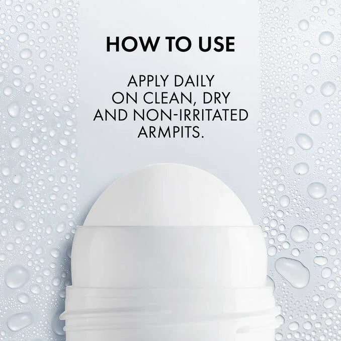 Apply Vichy 72 Hours Stress Resist Anti-Perspirant Deodorant Roll-On For Excessive Perspiration daily to clean, dry armpits.