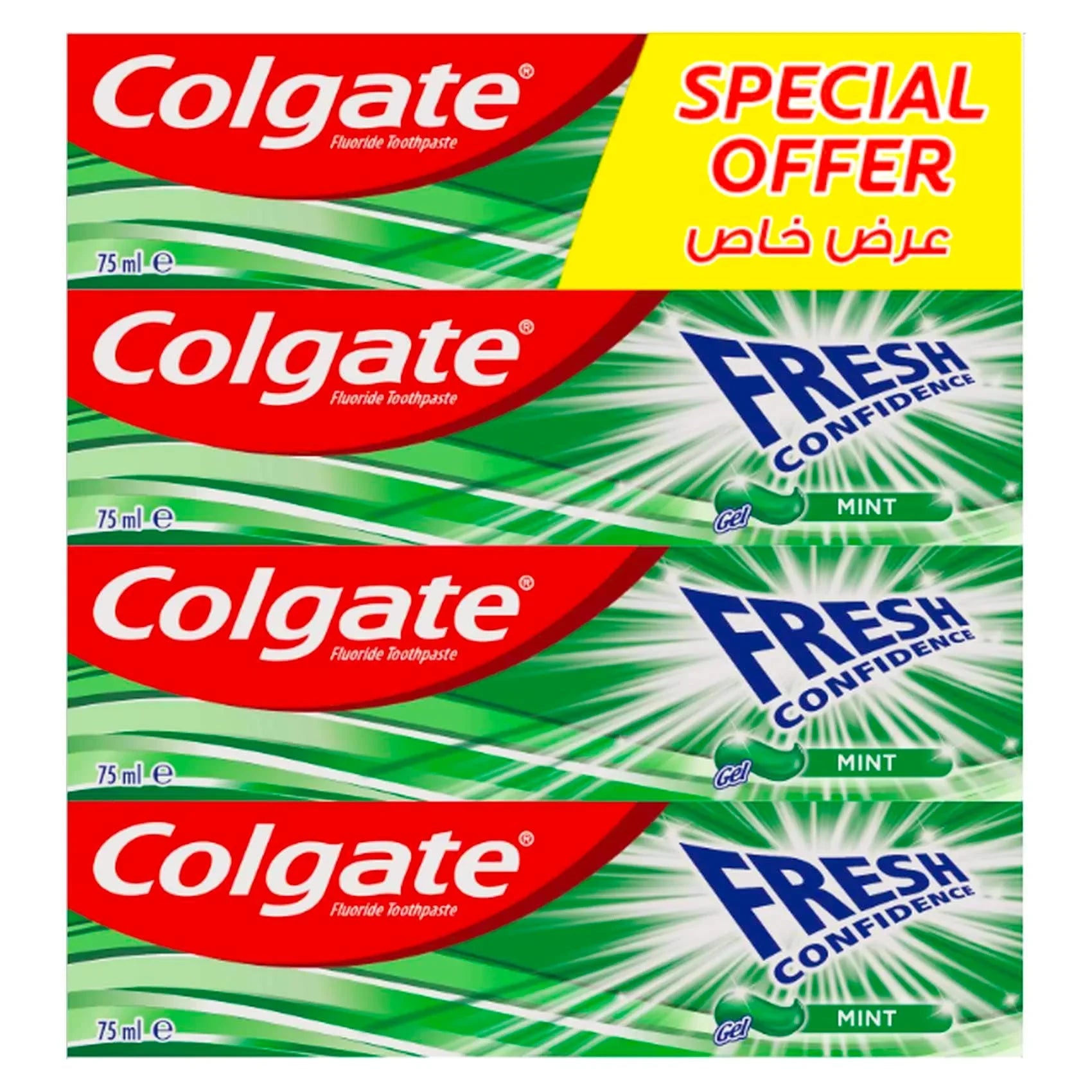معجون أسنان كولجيت جل فريش كونفيدنس بنكهة النعناع الأخضر - 4 قطع × 75 مل