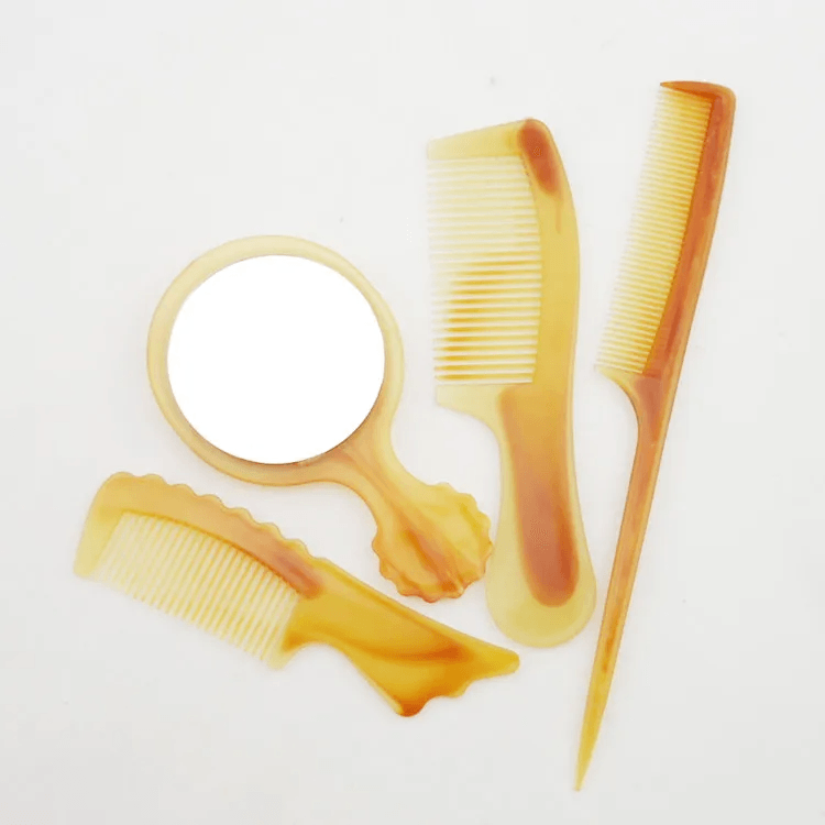 مجموعة أمشاط شعر مكونة من 4 قطع تتضمن مشطًا عريضًا وضيقًا ومتوسطًا مع مرآة أنيقة