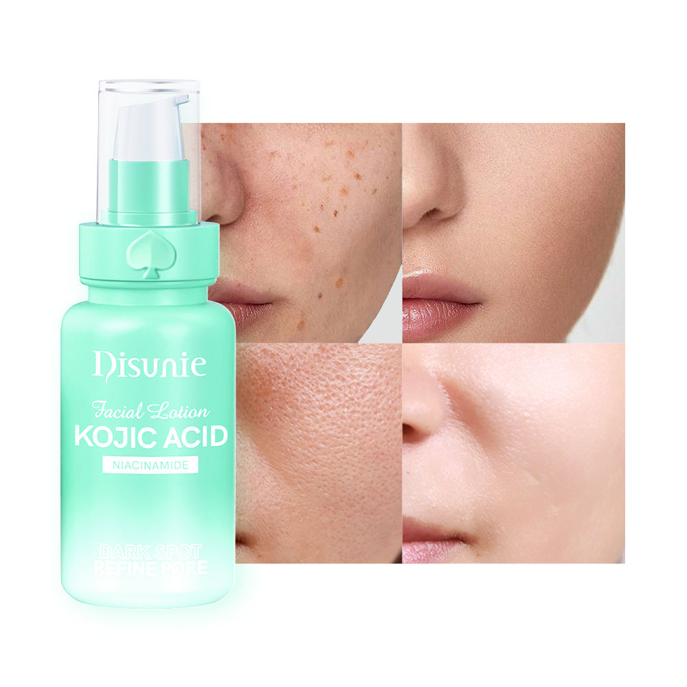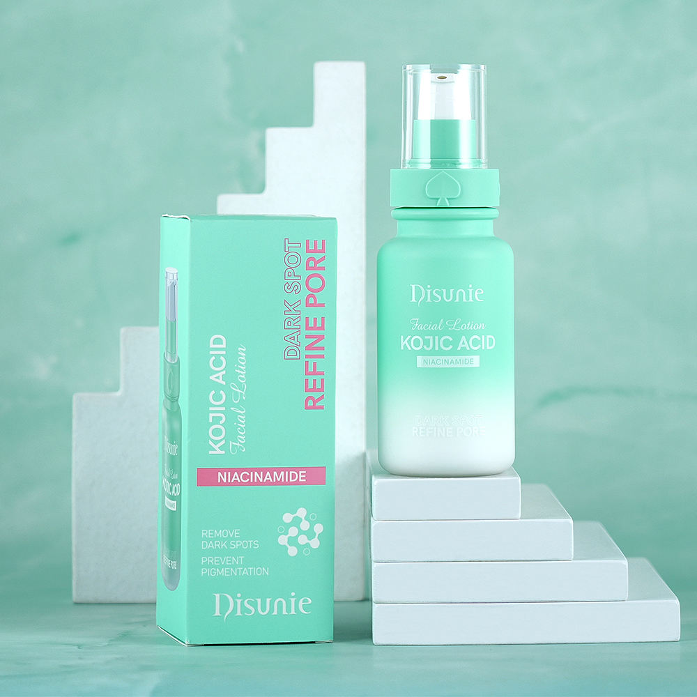 Reveal smoother, clearer, and more radiant skin with Disunie’s Niacinamide & Kojic Acid Facial Lotion, a lightweight brightening moisturizer crafted to hydrate, refine, and even out your complexion. Powered by Niacinamide (Vitamin B3) to minimize pores, improve texture, and balance oil production, and Kojic Acid to target dark spots and discoloration, this lotion delivers a luminous, refreshed finish with every use.