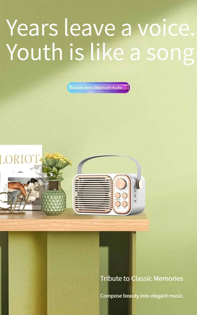 تشغيل، تشغيل قرص فلاش USB، تشغيل AUX تفوق المنتج: صغير الحجم وقابل للحمل، تأثير صوتي عالي الدقة بدون فقدان، جودة صوت عالية الدقة، طرق متعددة للاتصال، قدرة تحمل طويلة الأمد، تغيير الصوت بنقرة واحدة، اتجاه الموضة