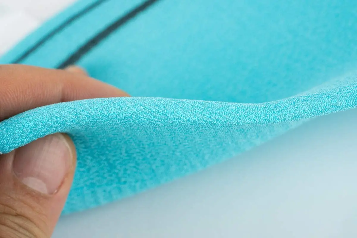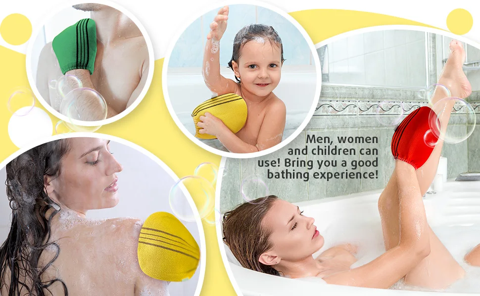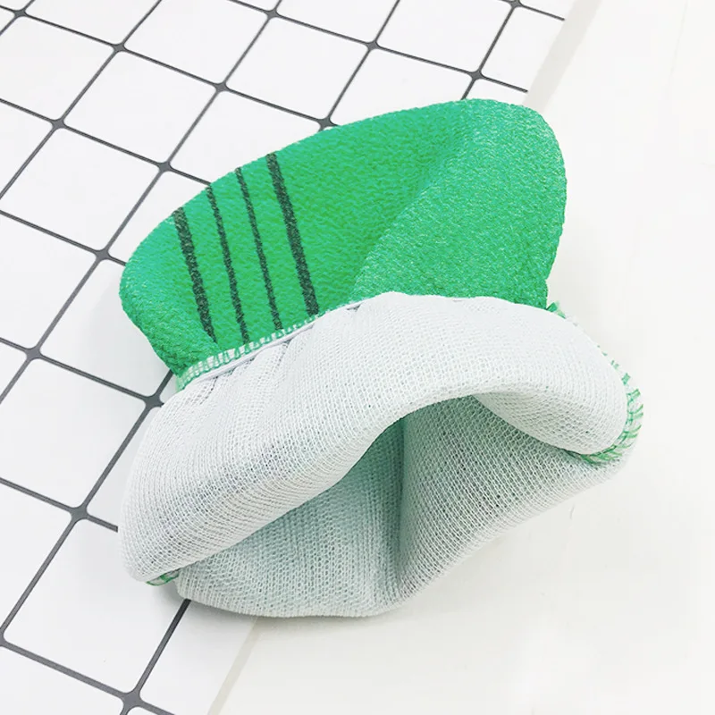 3. انقع القفازات ثم اعصرها للتخلص من الماء الزائد.ينبغي استخدام القفازات على الجلد المبلل فقط ولا ينبغي استخدامها تحت الماء الجاري.افركي بشرتك بقوة في اتجاه عمودي حتى تلاحظي ظهور قشور من الجلد المتقشر.