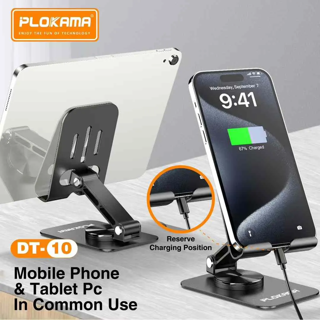 وصف المنتج: العلامة التجارية: Plokama اسم المنتج: PLOKAMA DT10 حامل سطح مكتب قابل للطي دوار 360 درجة (قاعدة متينة)