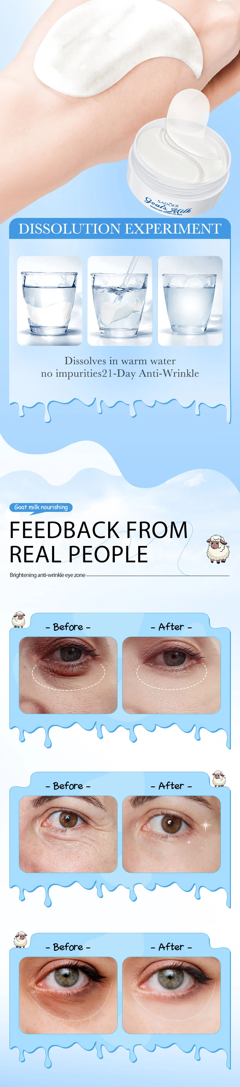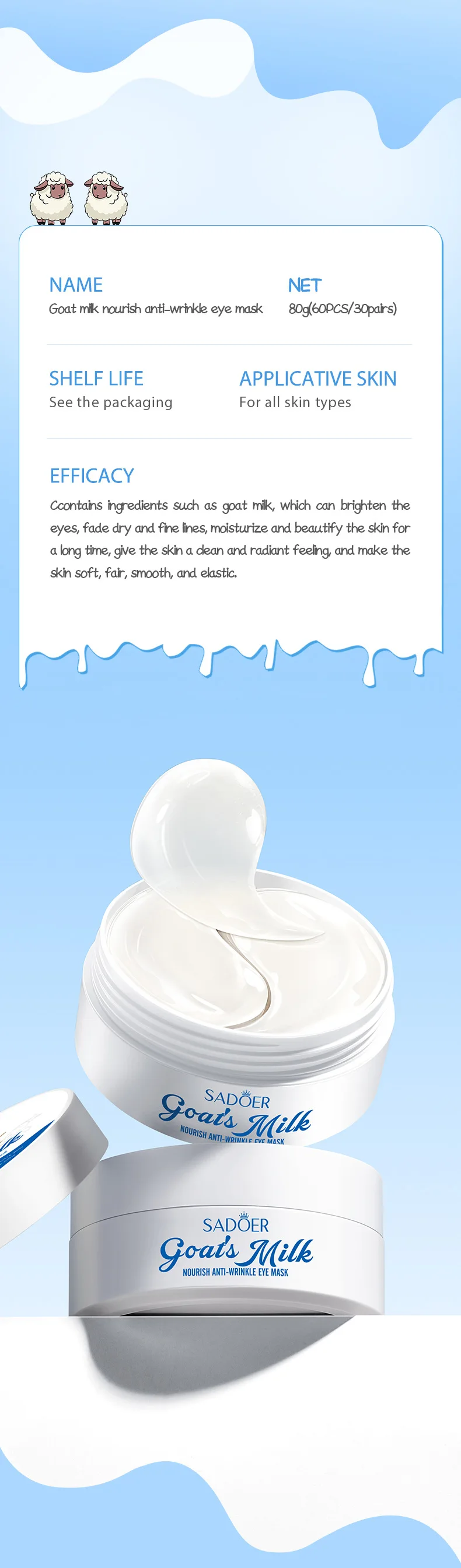 SADOER Goat Milk Moisturizing & Whitening Eye Mask – 80g (60PCS / 30 Pairs)