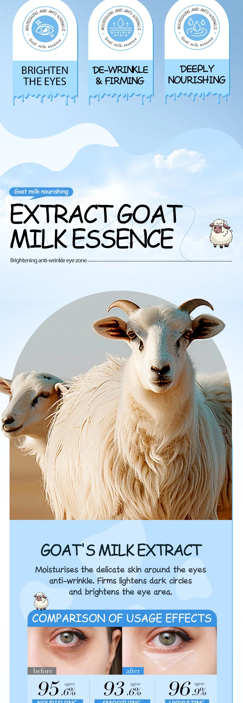 Natural Goat Milk Extract – Deeply nourishes and moisturizes the delicate under-eye area.